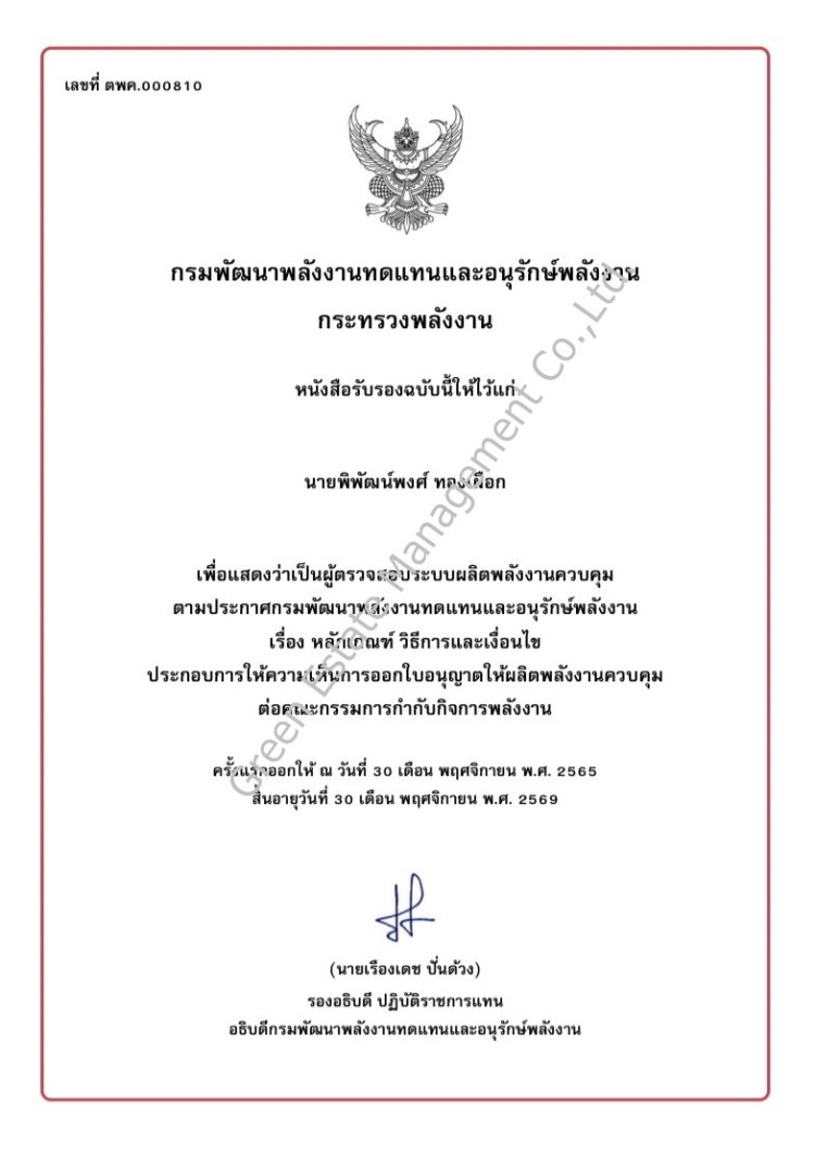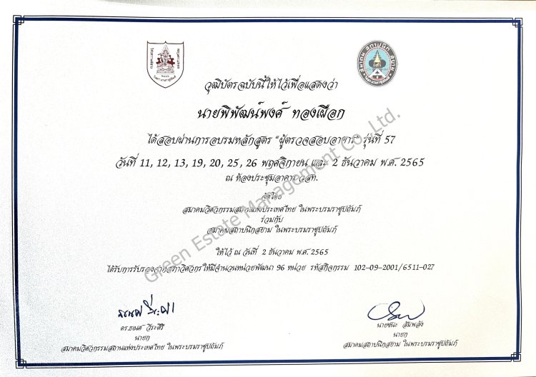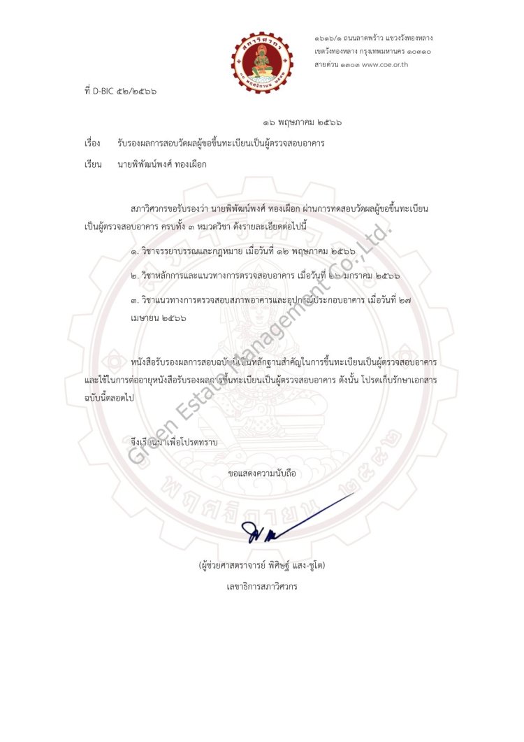 หนังสือรับรองขึ้นทะเบียนผู้ตรวจสอบอาคาร